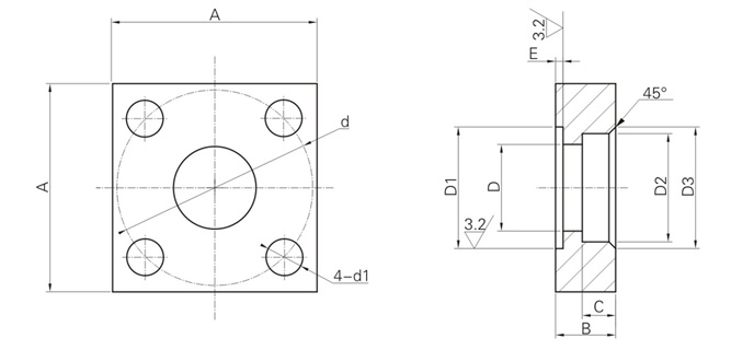 2.1連接法蘭請(qǐng)用戶參照下列尺寸加工: