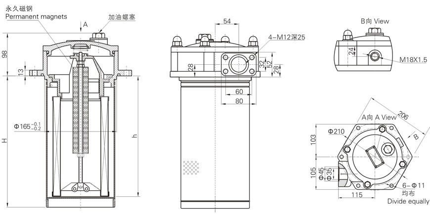WY、GP系列磁性回油過濾器系列傳統(tǒng)型是我廠參考國外先進(jìn)技術(shù)資料及廣大用戶的具體要求而特殊設(shè)計(jì)的新產(chǎn)品,這些過濾器僅一小部分的濾頭連接部分露在油箱外,其余大部分都在油箱內(nèi)部,從而簡化了系統(tǒng)管路,安裝方便,使系統(tǒng)排列緊湊美觀。在結(jié)構(gòu)上我們改進(jìn)了原來管路回油過濾器的龐大結(jié)構(gòu),考慮到液壓系統(tǒng)內(nèi)產(chǎn)生量多的還是鐵磁性污染物,所以在回油精過濾前,先經(jīng)強(qiáng)磁鐵進(jìn)行磁性過濾,然后再經(jīng)二級(jí)精密過濾。
