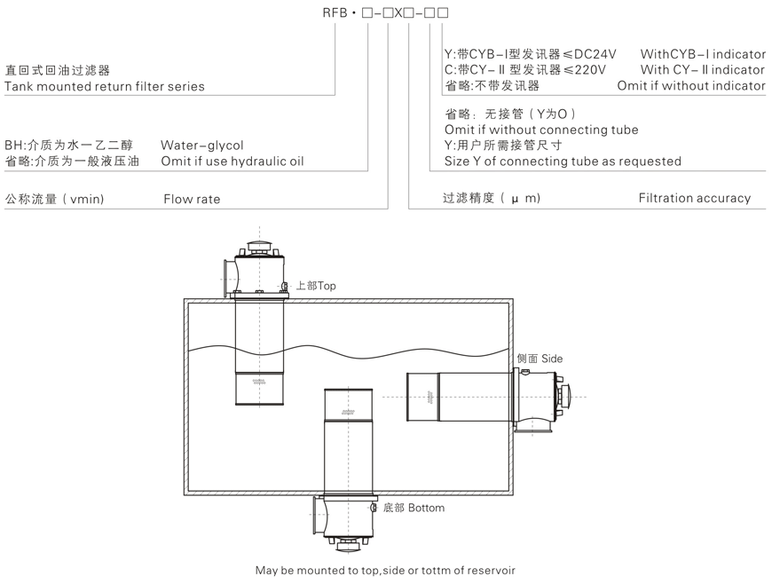 RFB型系列直回式回油過濾器用于液壓系統(tǒng)回油精過濾,濾除液壓系統(tǒng)中由于元件磨損產(chǎn)生的金屬顆粒,以及密封件磨損的橡膠雜質(zhì)等污染物,使流回油箱的油液保持清潔。